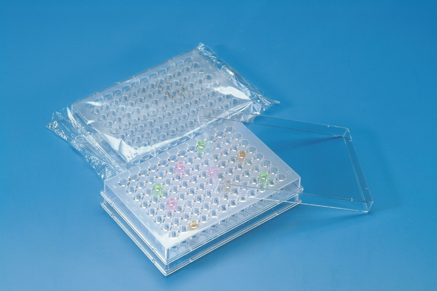 Placas de 96 pozos (Policubetas). Material: Poliestireno. Modelos disponibles: Fondo “U” – Fondo “V” y Fondo Plano.